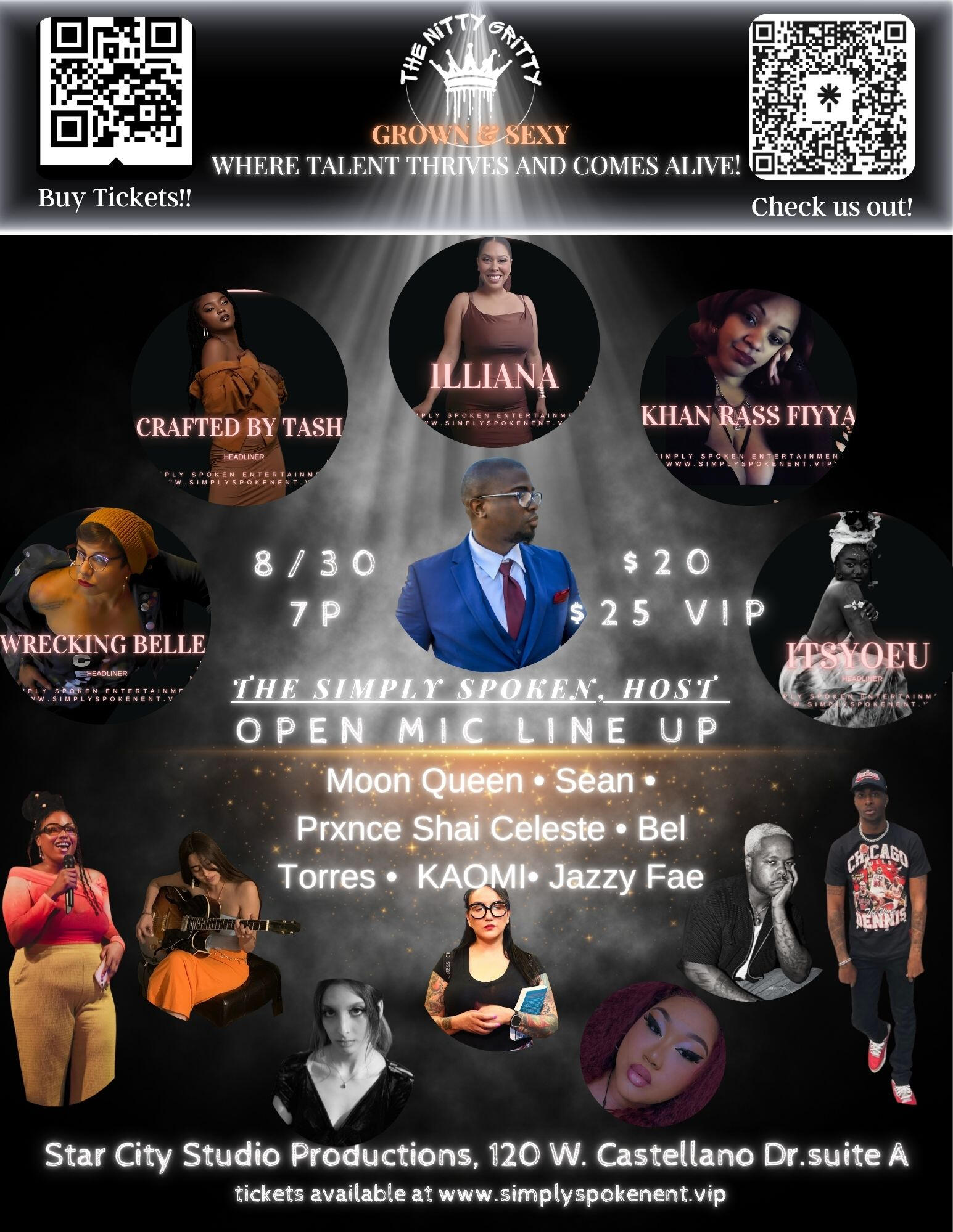 Simply Spoken Entertainment was created out of a need.In El Paso, open mics and performance spaces often felt closed off—cliquish, repetitive, and limited to the same voices. At the same time, there was no shortage of talent. Poets, performers, and creatives were looking for a place to step on the mic, be taken seriously, and be heard—even if only for one night.As poets ourselves, we wanted more than a bar crowd stumbling into poetry. We wanted people to arrive intentionally—to experience spoken word and live performance as the main event, not the background noise. We wanted an atmosphere with purpose, energy, and care. A space where the vibe was intentional and the experience felt elevated.Simply Spoken Entertainment is a collective built around that vision.